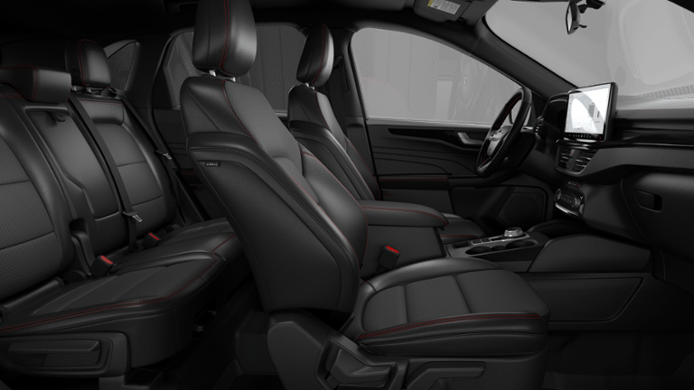 SeatType: Partial Vinyl and Cloth Seats with Red Stitching