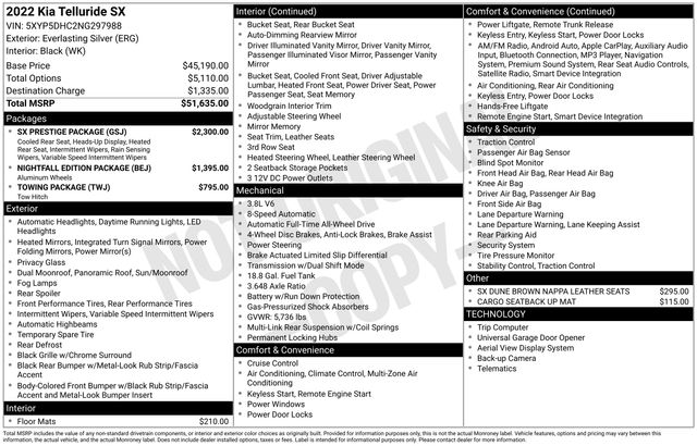 Hearing complaints regarding MRSP. Find a dealer that does not raise the price, the car holds unbelievable value. Absolutely love the technology advances: adaptive cruise control, auto dim LED lights, auto wipers, Car Play, side and rear impact warnings, left and right turn cameras make changing lanes safer, overhead camera helps greatly for parking, and the heat and air are the best I've ever experienced, and more. The care rides smooth and quiet and has plenty of get up and go. I've never used the third row but wanted the room to take a golf trip with 4 people and have the room to do it. Second row passengers can control their heat and air. They also get heated and cooled seats that recline and have USB ports for phones as well. The passenger talk works great for road trips while engaging in conversation. The SX may cost more but given the resale value I recommend getting all the extras.